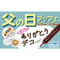 【ニラックスブッフェ父の日企画!】バラエティー豊かな食べ放題の『ニラックスブッフェ』でいつも頑張っているお父さんへ感謝の気持ちを伝えよう!ありがとうのデコレーションが楽しめるチョコペンをプレゼント!