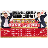 福岡県福津市学習塾『武田塾福間校』開校!6月10日~4週連続で個別相談イベント「地上最速の勉強方法 個別に教えちゃいますスペシャル」の開催が決定致しました。大学受験予備校 日本初!授業をしない。武田塾
