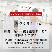 【新サービス導入】家族でお得!姉妹・兄弟・親子割引きスタート ~バレエのスタジオマーティ~