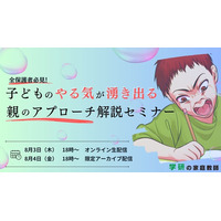 学研の家庭教師が、「【全保護者必見!】子どものやる気が湧き出る親のアプローチセミナー」を8月3日(木)、8月4日(金)に開催します!