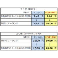 2023年8月に運行!11~27日は新宿線増便! ・「新宿~サマーランド線」は、バスタ新宿発着で東京サマー…