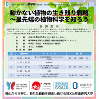 【岡山大学】公開講座「動かない植物の生き残り戦略 ~最先端の植物科学を知ろう」〔8/26,土 岡山大学津島キャンパス〕