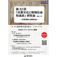 【岡山大学文明動態学研究所】第22回「災害文化と地域社会形成史」研究会〔9/9,土 オンライン開催〕