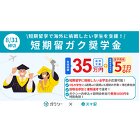 海外留学エージェント『スマ留』、本日8/1から国内最大の奨学金情報サイト『ガクシー』にて総額35万円分となる留学奨学金の申込受付開始。