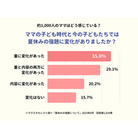 8割のママが「子どもの夏休みの宿題に変化あり」と回答。親の負担は減ったのか?