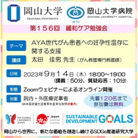 【岡山大学】岡山大学病院 第156回緩和ケア勉強会「AYA世代がん患者への妊孕性温存に関する支援」〔9/14,木 オンライン開催〕