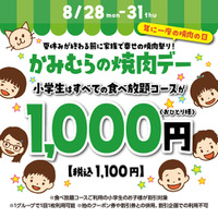 【かみむら牧場】「焼肉の日」は家族で幸せの焼肉食べ放題!小学生はすべての食べ放題コースが1,000円(税込1,100円)で楽しめる「かみむらの焼肉デー」!