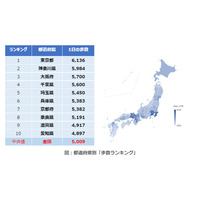 あなたは一日に全国の中央値5,009歩より歩いていますか? 都市部の通勤距離が長い人は7,449歩で1.5倍歩いていました。