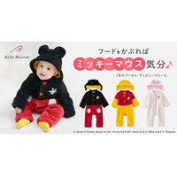 フードをかぶればミッキーマウス気分♪よちよち歩きさんにぴったり!もこもこジャンプスーツ 9月25日(月)よりリバイバル販売