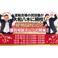 奈良県橿原市に学習塾『武田塾大和八木校』開校!9月23日~4週連続で個別相談イベント「地上最速の勉強方法 個別に教えちゃいますスペシャル」の開催が決定致しました。日本初!授業をしない。大学受験予備校