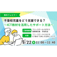 株式会社タオは9/22(金) に「不登校児童をどう支援できる?~ICT教材を活用したサポート方法~」と題したウェビナーを実施します
