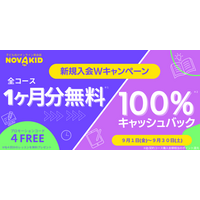 【新学期入会Wキャンペーン】1ヶ月分無料レッスン+100%キャッシュバック! 子ども向けオンライン英会話ノバキッド