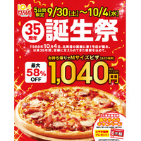 【10月4日はテンフォーの日】35周年誕生祭開催!ピザMサイズをテンフォー(税抜1,040円)価格で提供