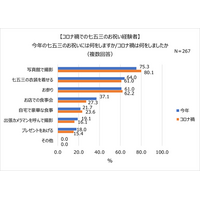 2023年七五三のお祝い。コロナ5類移行で「お店での食事会」増加!子どもの衣装は「和装」派が7割以上!人気和装カラー1位 男の子「青」、女の子「赤」。「着物・袴」を着る親も多数!