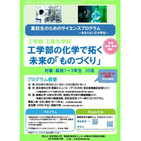 【10/28(土)】高校生のためのサイエンスプログラム-あなたも1日大学生-「工学部の化学で拓く未来の『ものづくり』」の開催について