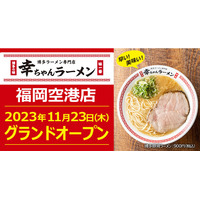 【元祖泡系博多一幸舎】プロデュース、「幸ちゃんラーメン(こうちゃん)福岡空港店」が福岡空港内(福岡県福岡市博多区)で移転、リニューアルし、2023年11月23日(木)遂にグランドオープン!