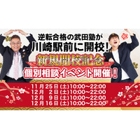 神奈川県川崎市に学習塾『武田塾川崎駅前校』開校!11月25日~4週連続で個別相談イベント「地上最速の勉強方法 個別に教えちゃいますスペシャル」の開催が決定しました。日本初!授業をしない。大学受験予備校