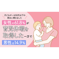 【子どもがいる50代以下の男女に聞きました】女性の61.8%が「育児休暇を取得した」 一方で男性は14.9%