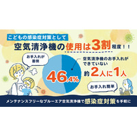 【感染症対策は一年中が新常識!】こどもの感染症対策として空気清浄機の使用は30%程度!さらに、6割超えの人が「お手入れが面倒」と回答し、約半数は適切に空気清浄機をお手入れできていない結果に