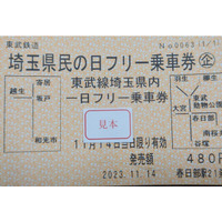 埼玉県内の東武線が乗り降り自由 11月14日(火)埼玉県民の日にご利用いただけるフリー乗車券…