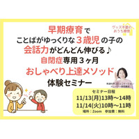 早期療育でことばがゆっくりな3歳児の子の会話力がどんどん伸びる『自閉症専用3ヶ月おしゃべり上達メソッド 体験セミナー』お申し込み受付開始