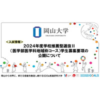 【岡山大学」2024年度学校推薦型選抜II(医学部医学科地域枠コース)学生募集要項の公開について