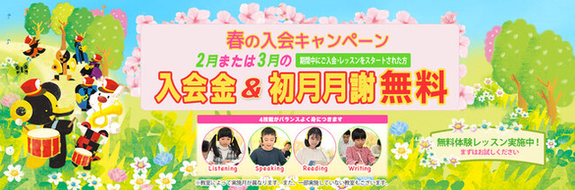 ・月謝の無料特典は、2月または3月のレッスンのみ対象です。2月または3月の途中や後半に入会された