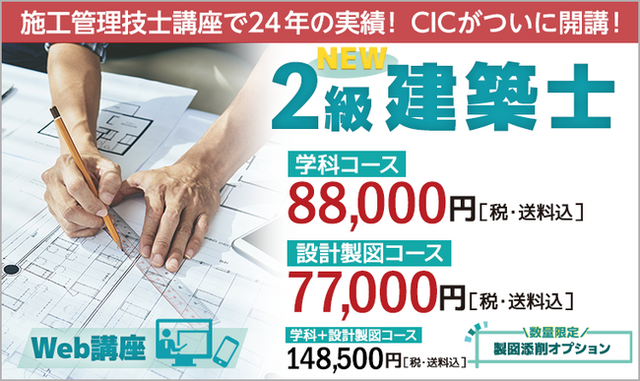建設系資格取得に向けた受験対策講習会・通信講座を展開している株式会社日本建設情報センター(東京都港区、代表取締役社長:井坂誠司)では、「2級建築士」Web講座を新規開講いたしました。