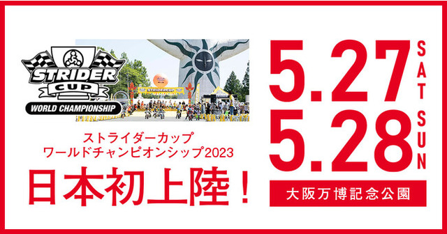 北米、南米、ヨーロッパ、アジアから約90名のストライダーに乗る子どもたちが大阪府・万博記念公園に集結。レース以外にも世界中の子どもたちが交流できるさまざまなコンテンツを実施予定。イベントの詳細情報、エントリー方法については3月上旬頃に公開予定です。