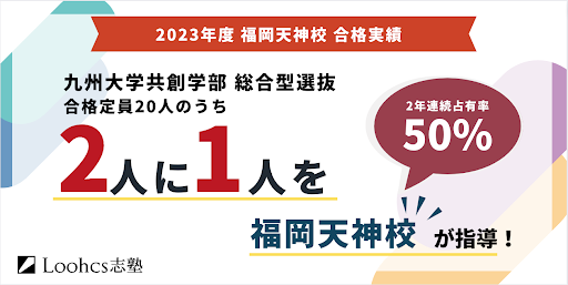 Loohcs株式会社(代表取締役 :嶺井 祐輝 本社所在地: 渋谷区桜丘町)は、同社運営の総合型選抜・AO推薦入試専門の学習塾「Loohcs志塾福岡校」が、2023年度の「九州大学共創学部」の合格実績を発表致します。
