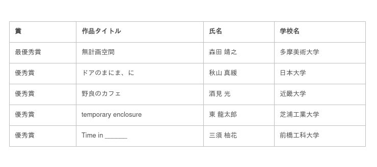 田村友一郎氏を審査員長に迎え、建築家の藤原徹平氏、中山英之氏ら審査員による厳正な審査