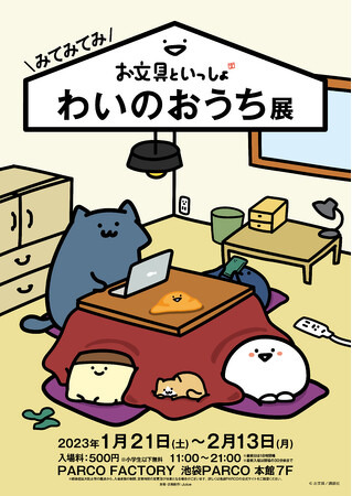 株式会社 Juice(代表取締役:神戸テルオ・本社:東京都豊島区)は、YouTube 総再生回数1 億8000 万回を突破しているSNS で人気の癒し系キャラクター「お文具さん」。キャラクター史上初となる大型展覧会「お文具といっしょ わいのおうち展」を、2023 年1 月21 日(土)より池袋PARCO 本館7F・PARCO FACTORY にて開催致します。