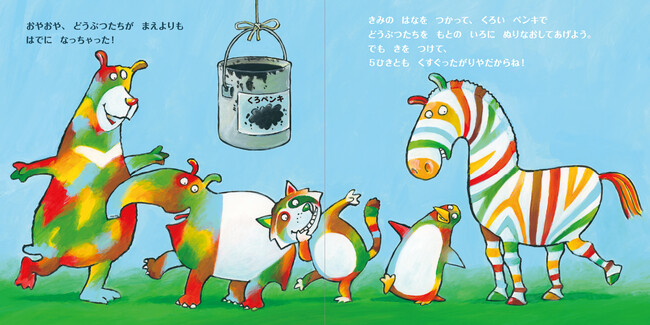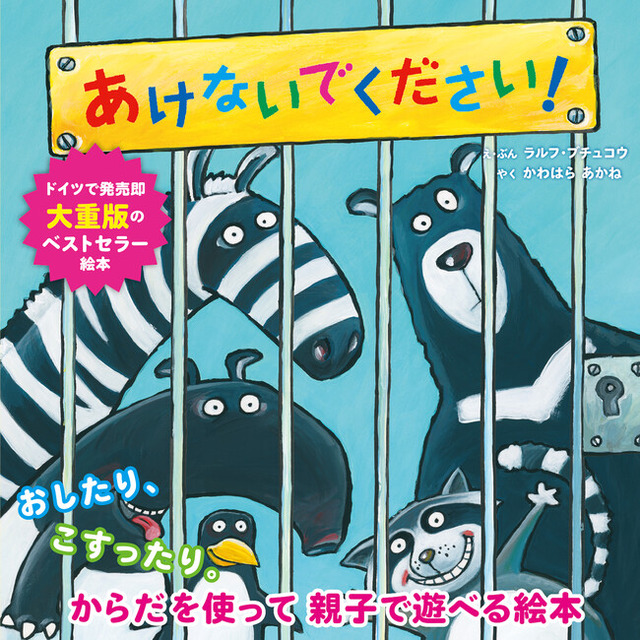 「あけないで!」の警告を無視してページをめくると、動物園の檻からシマウマやペンギンなど白黒の動物5匹が大脱走! 逃げた動物たちをつかまえようと、指を使って動物たちのお尻を押したり、本を逆さにしてふったり、鼻を使って色をぬってみたり……。からだを使って遊べる内容が、親子で楽しみながら読めるとドイツでベストセラーとなった参加型絵本。待望の翻訳版です。