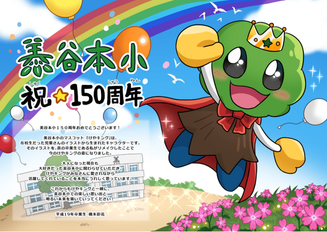 これまで築いてきた長い歴史と伝統を振り返り、これからの未来につなげていくために、開校記念日当日は「記念式典」とともに、児童が企画した記念行事「けやキングfest.」、児童のアンケートをもとにした記念給食、バルーンリリースを実施します。