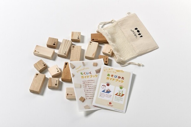 ●内容 :積み木、収納バック(巾着型)、あそび方ガイドブック、もくいくガイドブック