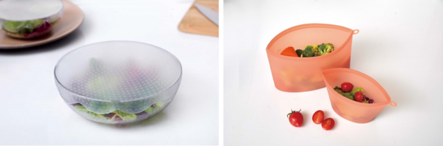 「シリコンラップ」と「シリコン保存バッグ」はマイナス30度から230度まで対応しているため、料理をそのまま冷蔵庫や冷凍庫に保存することもできますし、食べる際に電子レンジで温めることもできます。