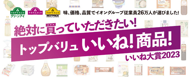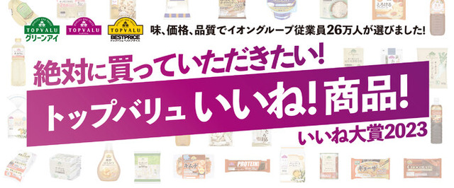 イオンは昨年の11月から12月にかけて、全国のグループの従業員に“お客さまにおすすめしたいトップバリュ商品”としてアンケート調査※1)を行いました。本調査に基づき、グループ26万人の従業員がおすすめする「トップバリュ いいね大賞2023」として「トップバリュ商品&トップバリュグリーンアイ商品」「トップバリュベストプライス商品」からそれぞれBEST10※2)をご紹介します。(https://www.topvalu.net/topvalu_iine2023/)