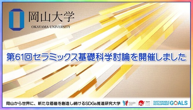 国立大学法人岡山大学(本部:岡山市北区、学長:槇野博史)は、2023年1月7、8日、岡山大学津島キャンパスの一般教育棟にて「第61回セラミック基礎科学討論会」を開催し、大学や民間企業所属の研究者を含めた約280人が参加しました。