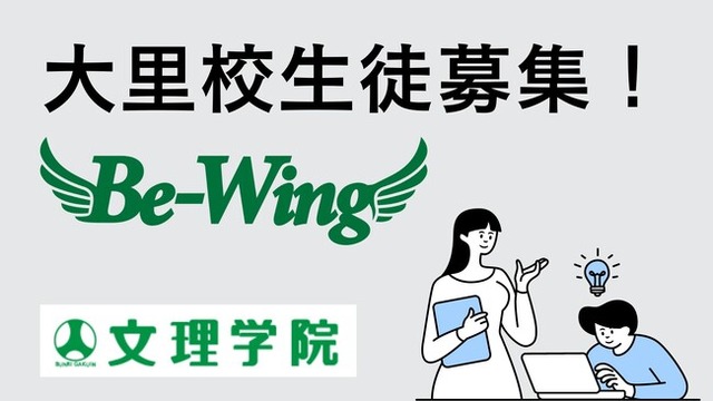 甲府市にある文理学院大里校でBe-Wing新年度生(中・高生)の募集を開始しました。大里校では今年度「Be-Wing」という新しい指導形態を導入します。新学年の授業を3月からスタートするのにさきがけ、この1月から新年度生の募集を開始しています。