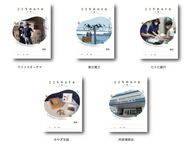 アイリスオーヤマ、東北電力、七十七銀行、みやぎ生協、阿部蒲鉾店の賛同、協力を得て「頑張る大人の姿を子供たちにノートを通じて共有する」こころノート第二弾を発行します。 それにともない仙台市内長町中学校の協力を得て、中学 1 年生全生徒にノートを寄贈。 また「こどもにとって将来働くとは?」と題し、七十七銀行と発行元の虹とソラが子供たちに出張授業を開催致します。