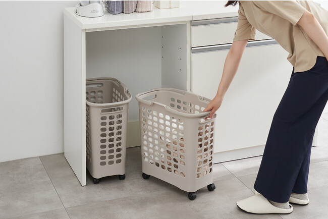 キャスター付きで移動や引き出すのに便利なランドリーバスケットです。スリムなボディで狭い隙間にも収まるため、収納しやすいのが嬉しいポイントです。