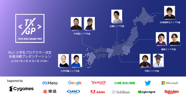 株式会社サイバーエージェント(本社:東京都渋谷区、代表取締役社長:藤田晋、東証一部上場:証券コード4751)の連結子会社である小学生向けプログラミング教育事業の株式会社CA Tech Kids(読み:シーエーテックキッズ、本社:東京都渋谷区、代表取締役社長:上野朝大)https://techkidsschool.jp/ は、主催する小学生のためのプログラミングコンテスト「Tech Kids Grand Prix 2022 (テックキッズグランプリ2022)」において、本選決勝プレゼンテーションに登壇するファイナリスト10名が決定したことをお知らせいたします。本戦決勝プレゼンテーションは、2023年2月26日(日)に東京渋谷にて開催し、その場で全国No.1小学生プログラマーの座を決定いたします。