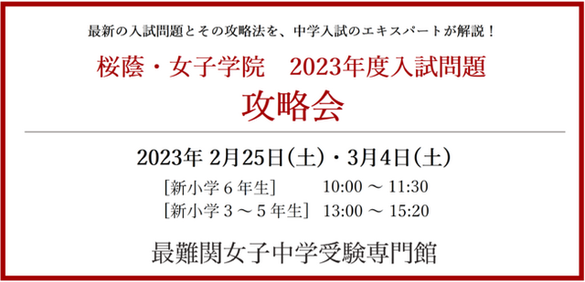 10:00~11:00 「桜蔭・女子学院2023年度入試問題 攻略会」