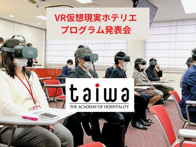 京都ホテル観光ブライダル専門学校は、 「ホテリエ」向けVR(仮想現実)コンテンツを開発し、1月24日(火)にはメディア・業界関係者を招聘しての発表会を開催しました。 ホテル・旅館業に従事する職業人のDX人材プログラムの先駆けとして、 今後は専門学校の学生やホテル・旅館の従業員リスキル、 リカレントプログラムとしてサービスを提供します。ホテリエ向けのVR(仮想現実)は、日本でもまだ珍しく、発表会参加企業・団体のインタビュー調査では「VRホテリエ」を初めて体験したと回答した企業が100%でした。