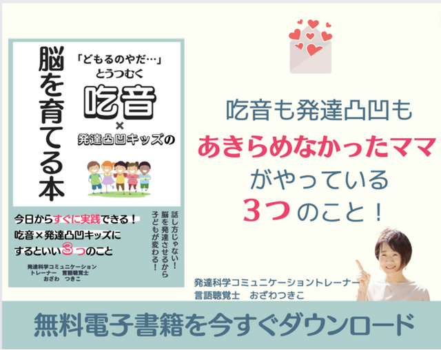 この度、吃音や発達凸凹の情報に混乱し、どう対応したらよいのか迷っているママとパパに向けて『「どもるのやだ…」とうつむく吃音×発達凸凹キッズの脳を育てる本』と題して小冊子をリリースいたしました。