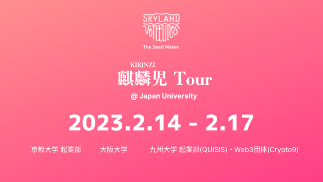 これまでもSkyland Venturesは定期的に起業志望の学生向けのイベントや大学の起業家講座への講演を定期的にやってきましたが、今回福岡・京都・大阪の学生向けに講義と起業家コミュニティ麒麟児をつくりました。