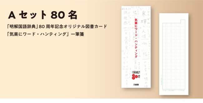Aセット 『明解国語辞典』80周年記念オリジナル図書カード+「気楽にワード・ハンティング」一筆箋