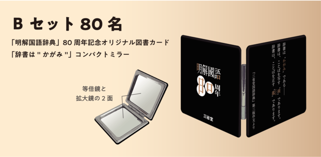 Bセット 『明解国語辞典』80周年記念オリジナル図書カード+「辞書は“かがみ”」コンパクトミラー