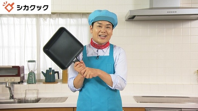 『本当に僕もフライパンには悩まされることが多くて、だったら自分で満足いくフライパンを作ろうと試行錯誤を繰り返しながら、ほんとイチから作らせてもらいました。これまで皆さんが抱えてきたお悩みを解消するだけでなく、いろんな調理も手軽に楽しんでいただけるものにしようとメーカーさんと何度もやりとりをして、やっと完成したのがこのシカクックです!シカクックは、軽くて焦げ付きにくく、しかもお料理を楽しんでいただける、こだわりの自信作です!』