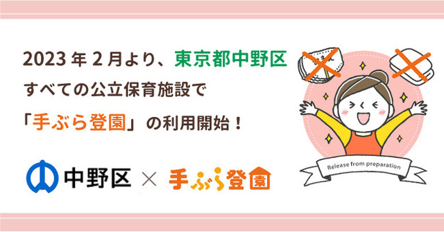 BABY JOB株式会社(本社:大阪府大阪市、代表取締役社長 上野公嗣)は、2023年2月より東京都中野区の公立保育施設全園において、保育施設向け紙おむつのサブスク「手ぶら登園」が利用されることをお知らせします。